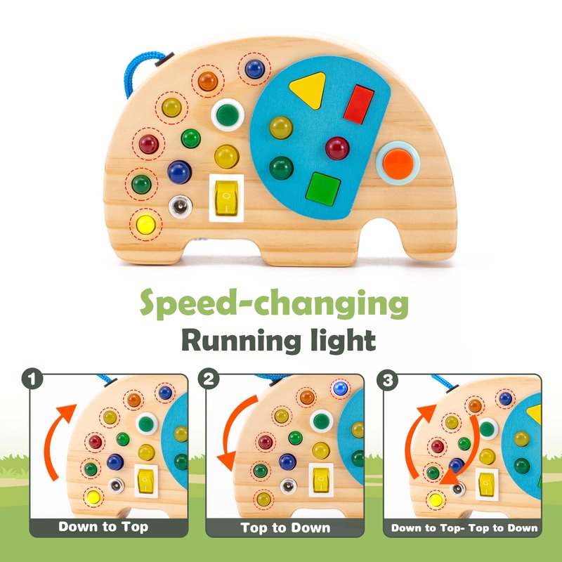- Perfect Gift for Boys and Girls of All Ages! - Adorned with an adorable elephant shape, the busy board with light switch grabs attention wherever it goes, making it a hit with kids of all ages. It's the perfect gift for both boys and girls.