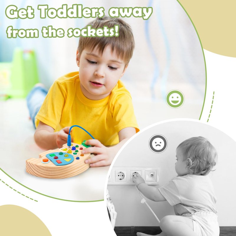 - Discover the Perfect Busy Board for Toddlers - Taking things a step further, this Montessori busy board includes a battery compartment at the back with additional switches, adding more exciting features to the activity board. With plugs, lights that change colors, and various light touch switches, it brings a wealth of surprises and endless fun.