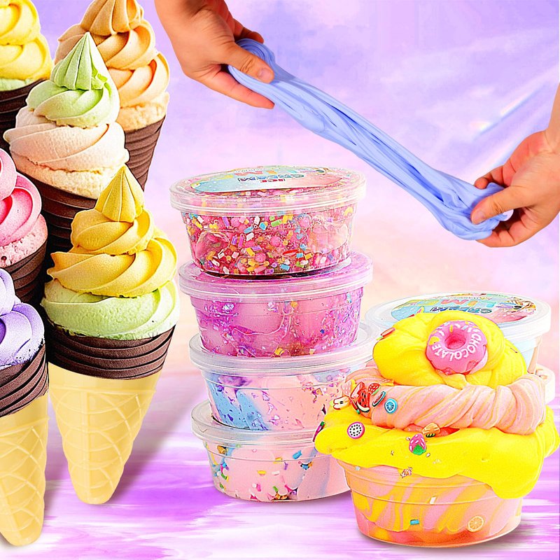 - Slime Kit, featuring Ice Cream Slime, is an enchanting assortment designed to bring joy, creativity, and stress relief to kids aged 6-12.