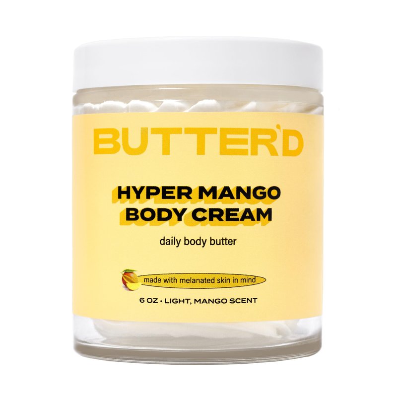 Butter'd Bodycare Hyper Mango Body Cream Mango Scent, Premium Body Butter for Improving Hyperpigmentation Hydrating Rich in Vitamin C, Rose Hip Oil, Jojoba Oil (6 oz)