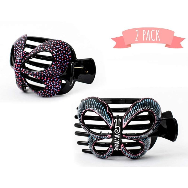 Butterfly Barrettes Hand Painted, Bun Cover Clips, 2 Pcs of a Uniquely Hair Bun Holder. for Thick and Thin Hair. this Attractive Hair Accessory can be used as a Bun Maker or a Hair Claw.