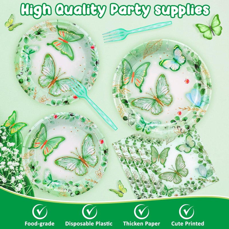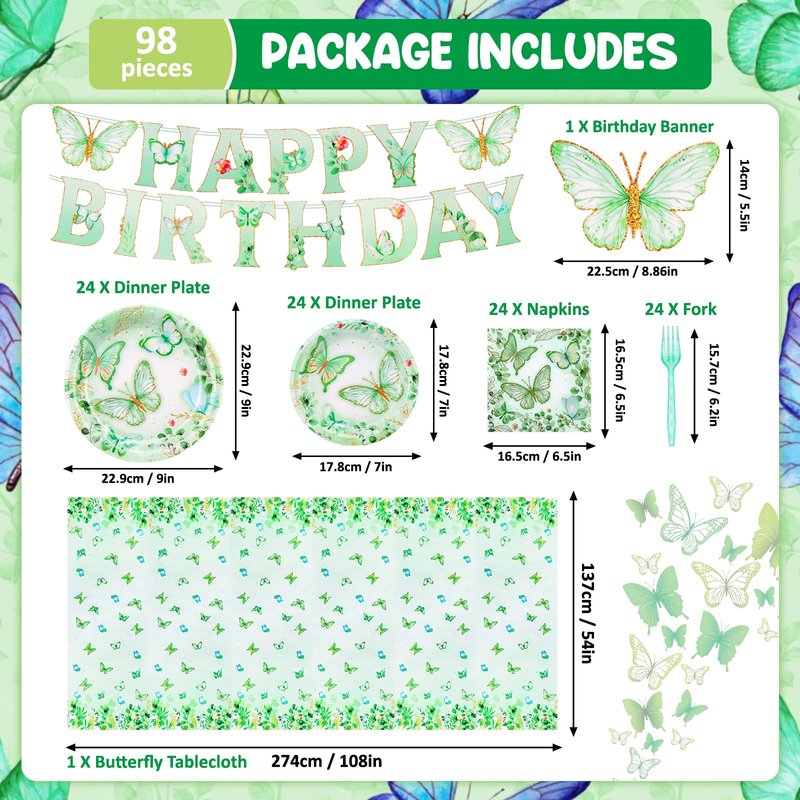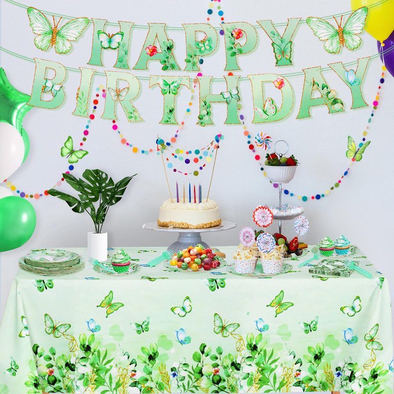 - 【Charming Butterfly Design】: Elevate your party decor with delightful butterfly designs. The elegant green and white hues, coupled with butterfly and pretty flower, infuse a vivid and cheerful ambiance, ensuring every event is a resounding success and adding an enchanting touch to any celebration. these birthday decorations for girls will surely make your party stand out and leave a lasting impression on your guests.