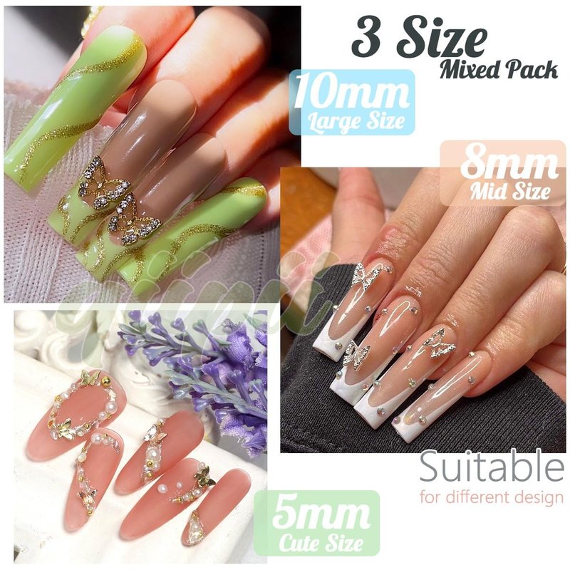 - ❤【Total 58pcs exquisite 3D Butterfly nail charms, romatic valentines nail charms】You will get 8pcs Golden Silver 3D Butterflies Nail Charms in 3 designs and sizes, elegant with many vivid butterfly shape. 8pcs Butterfly Nail Rhinestones and Gems, 50pcs Butterflies Nail Alloy Studs, enough quantities and styles, meet your daily design needs, make your nail to be charming.