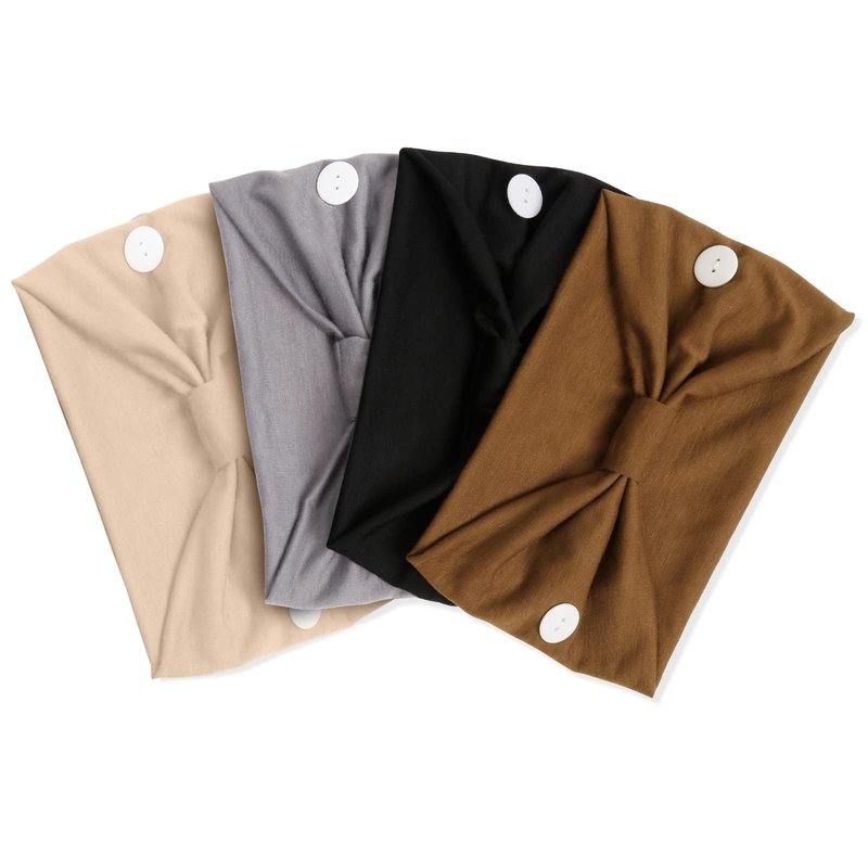 - Soft Material & Lightweight - Wide button Headbands for women are made of polyester and spandex fabric, so soft, comfortable, sweat wicking and lightweight. Wearing the headband with a mask will not bind your head. Right position buttons are great to wear without any worry.