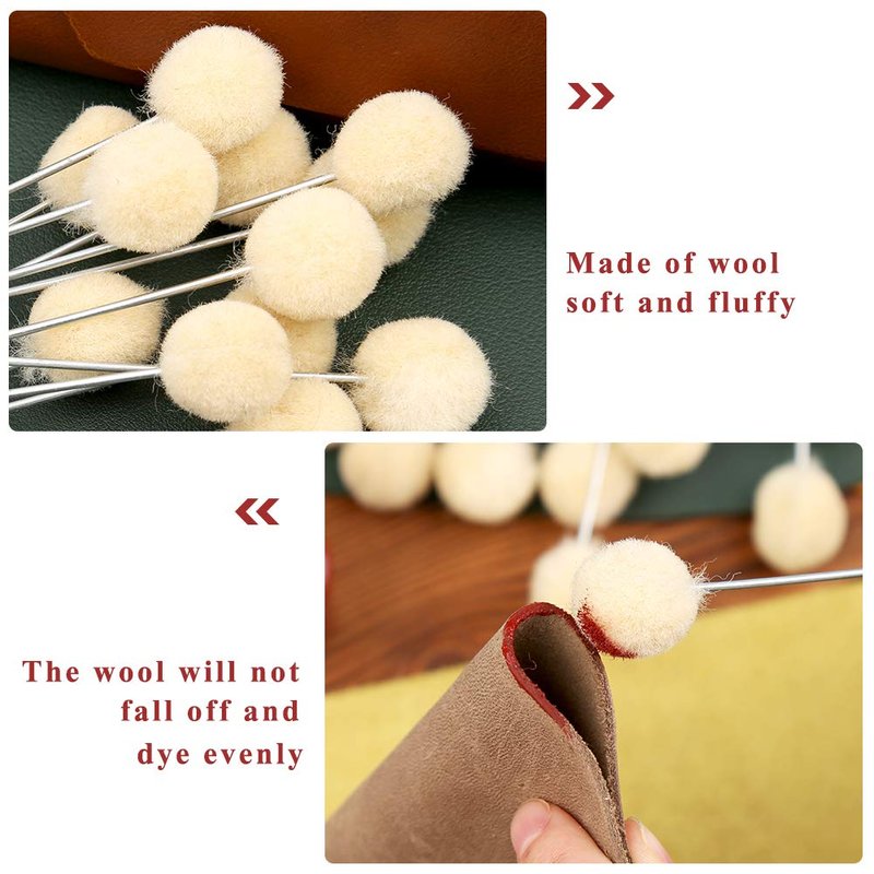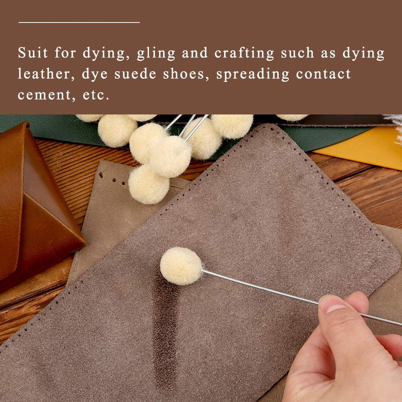 - EXCELLENT CHARACTERISTICS: The size of the leather dye brush is uniform, and it is not easy to fall off, soft and fine, smooth and its operation efficiency is high. 5.1inch long stainless steel handle ensures hands are far away from reagents when used. Wool daubers are durable and washable, so these wool dye daubers can be reused many times.