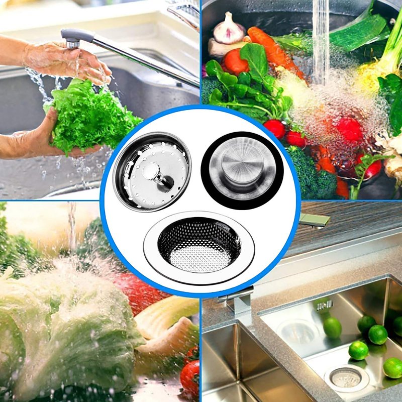 Buumook 3 Pack - Kitchen Sink Drain Strainer and Stopper Set for Most Sinks, Silver