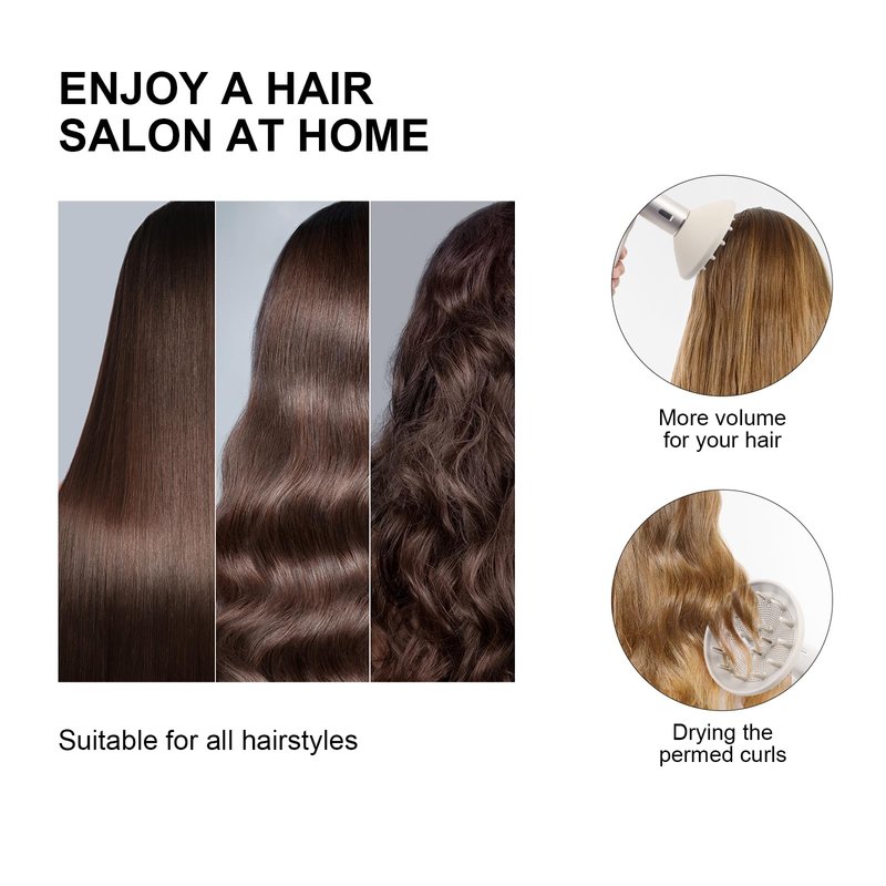 - High Quality Material: This diffuser is made of high quality PC material, which is high temperature resistant and ensures safe use. Help you blow dry your hair faster and prevent hair damage through indirect heat. (Pay attention to prevent heat when removing the accessory)