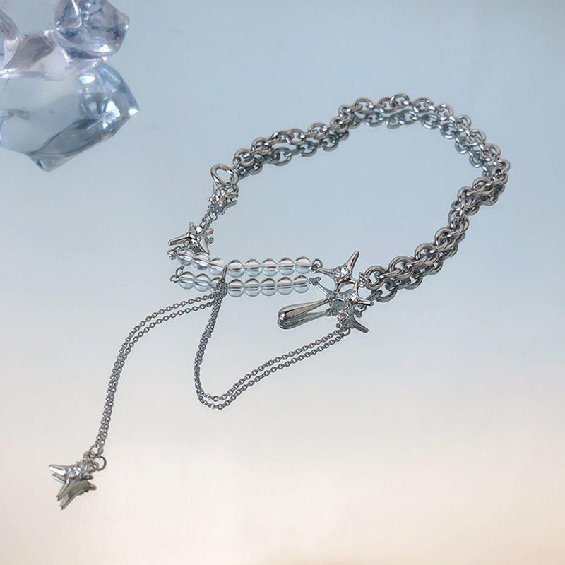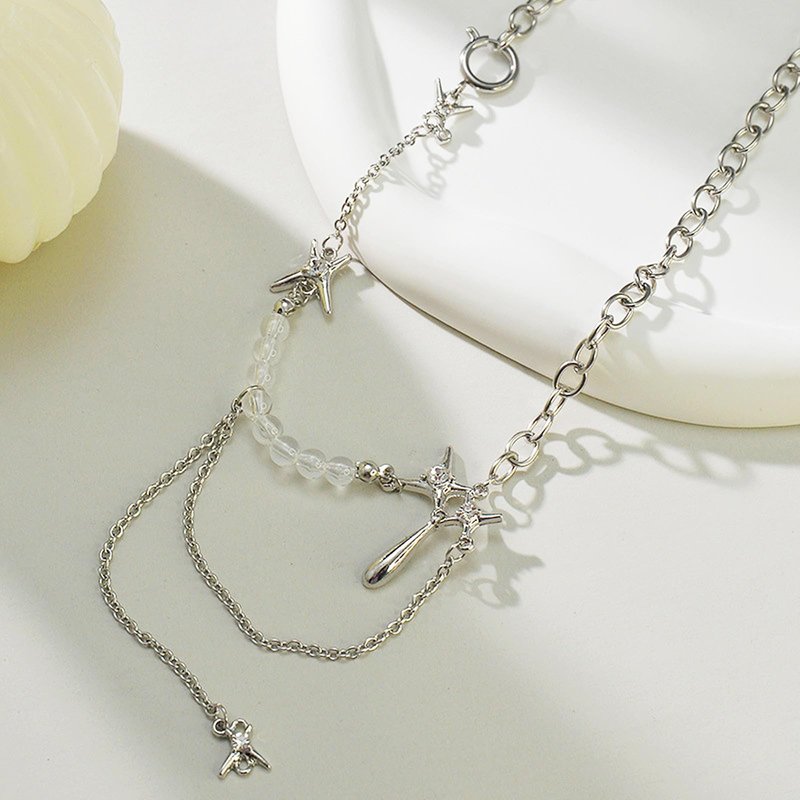 - The combination of stars, beads and chains makes the necklace more designed.The necklace is made of alloy material and not waterproof.