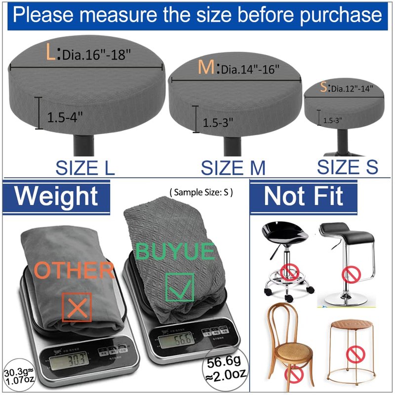 - ✦SIZE S✦ Cover 12"-14" for Seat diameter 12"-14" and seat thickness 1.5"-3" stools. Please measure stool seat size before placing order.