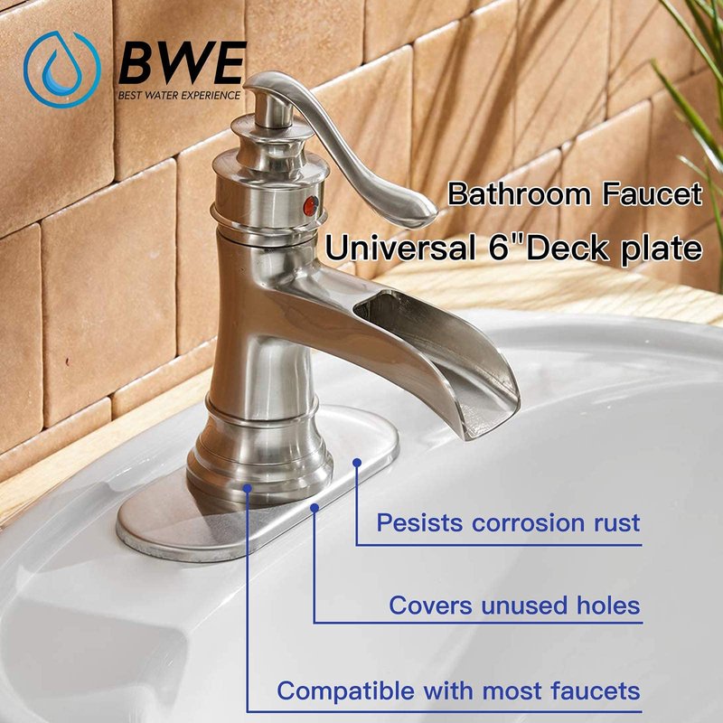 BWE 6 Inch Bathroom Vanity Sink Faucet 4" Hole Cover Deck Plate Escutcheon Brushed Nickel