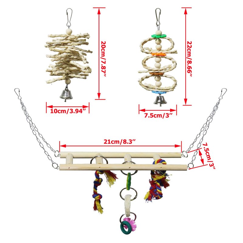 - Multi-function bird toy: they are designed to let your bird's feet have rest while also offer exercise opportunities for your birds to keep healthy and fit. Provides your little bird an ideal elevated place to swing, chew and climb.