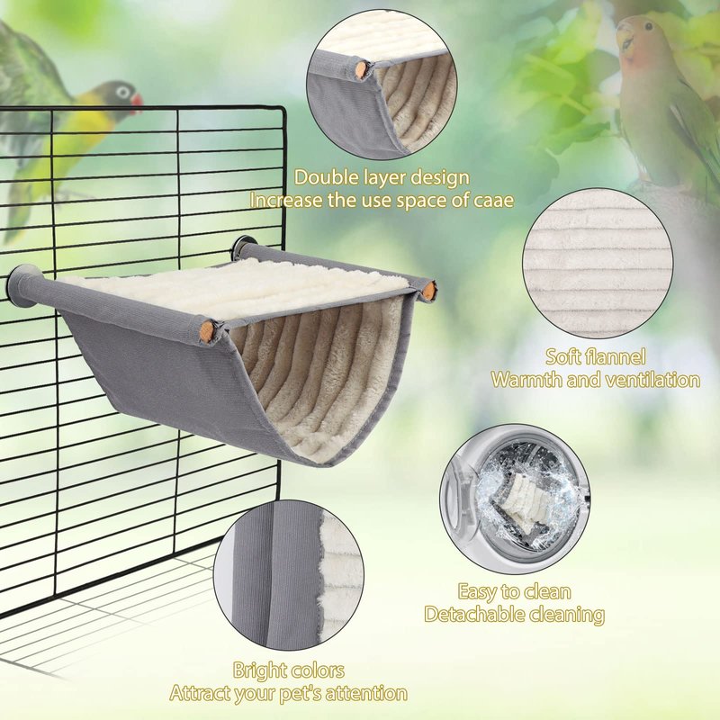 - Double-layer Design: The double-layer hammock allows parrots to move up and down freely. They can play on the top or rest and hide on the lower.While your birds are warm, they can also reduce the pressure of birds, provide them with a sense of security.