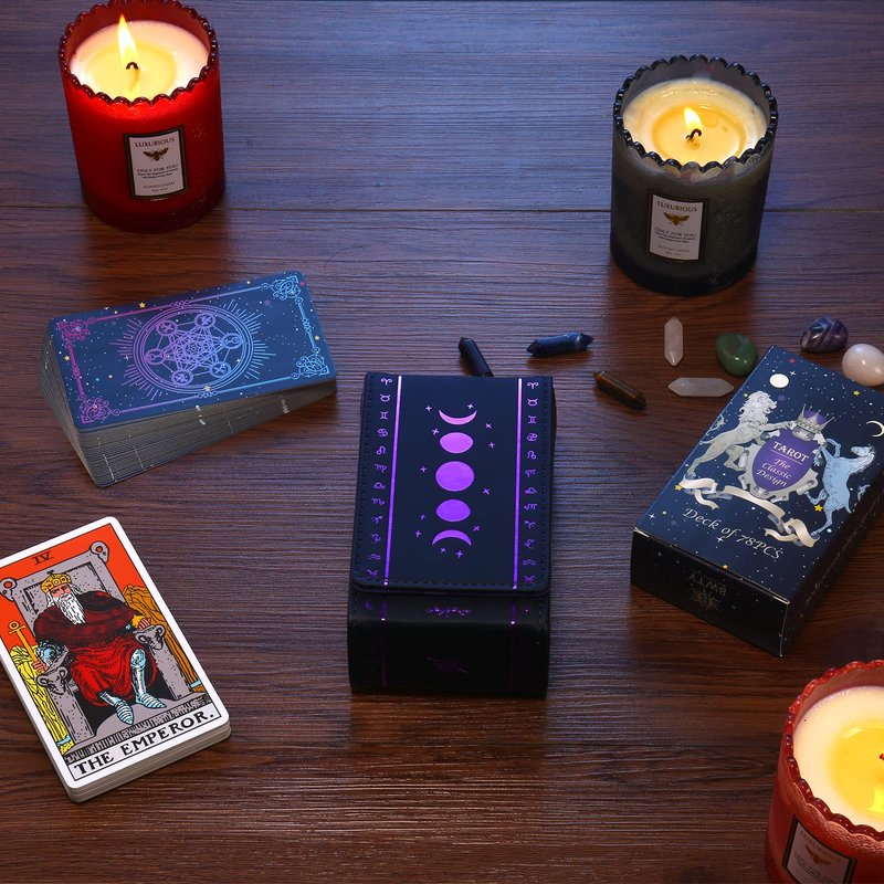 - Material - Made of comfortable PU leather with purple felt liner inside for better protection tarot cards set.