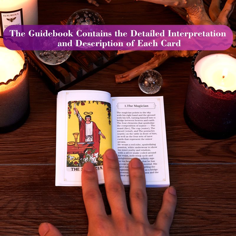 - 【Tarot Cards for Beginners with Guidebook】The guidebook has detailed descriptions of the 78 tarot illustrations, which can deepen your understanding of tarot art,the catalog can help you quickly find out the illustrations. You can also learn Yes or No tarot reading, element, tarot spreads and other knowledge from the guide book.