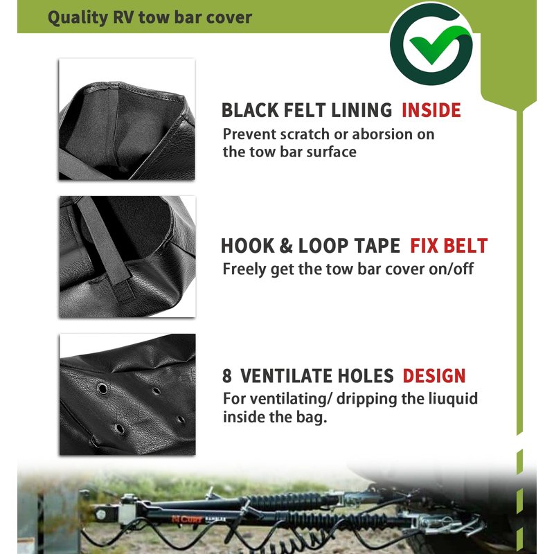 - 【Essential Accessor】This BX8875 upper tow bar cover offers storage convenience, a go-to storage option for your RV's flat towing bar. Allows you to organize the neat management of your RV towing bar, slack cords, and cables all in one place