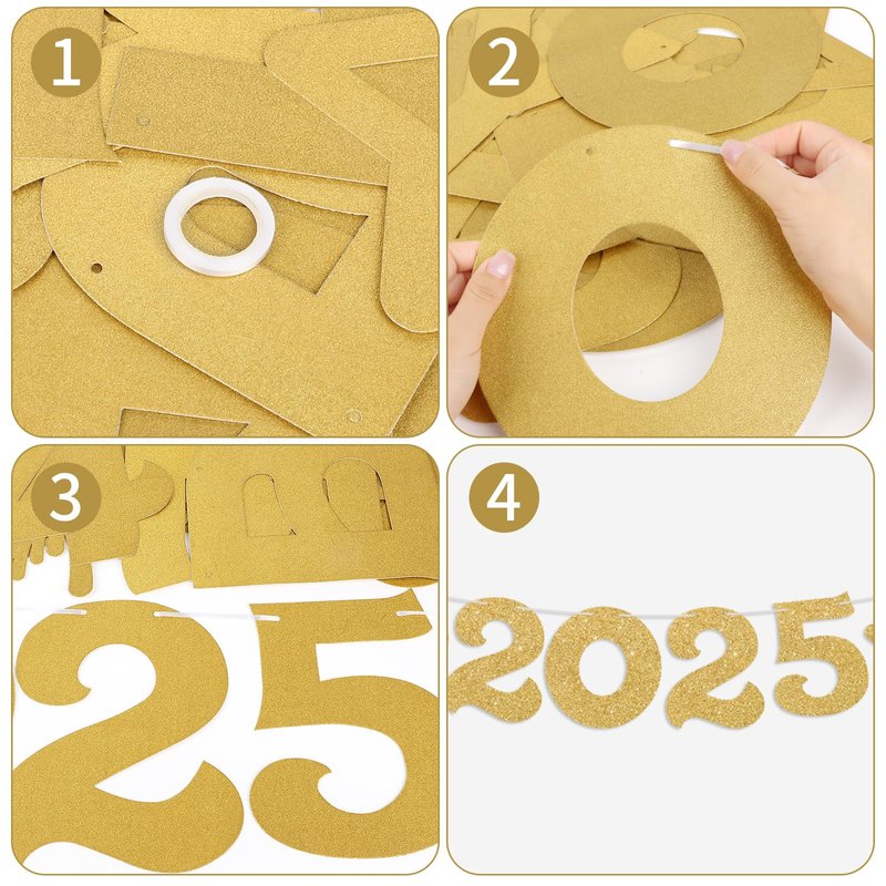 - Large size- Each card size approximately 7.48 x 7.87 inches, and the golden glittering 2025 banner will announce the successful end of 2024, wishing the bright sunshine of 2025 is about to begin. Spend New Year's Eve with our 2025 banner
