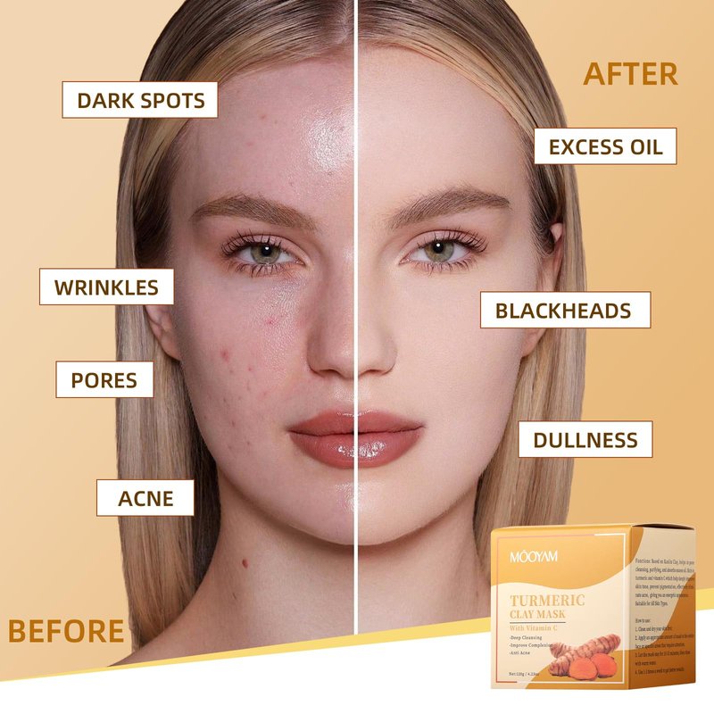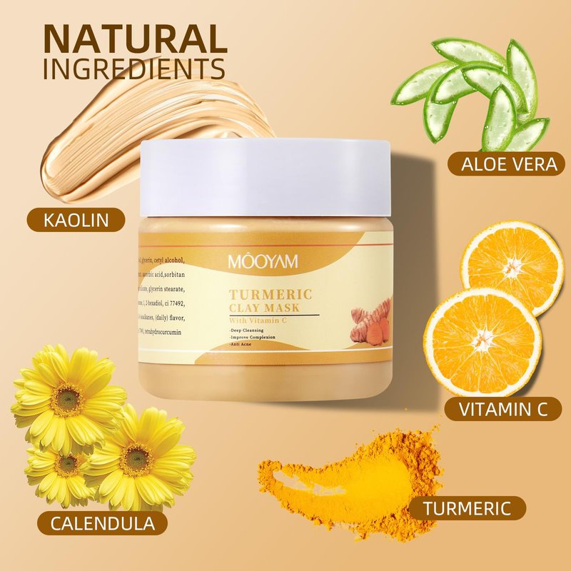 - DEEP CLEANSING ACTION: Clay face mask with turmeric vitamin c and kaolin to gently cleans the skin and clears impurities, as mud texture is easy to push away and draws out impurities, excess oil, and blackhead from your pores, promoting a deep cleanse but gentle exfoliating effectfor a smoother complexion