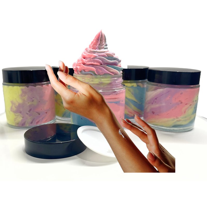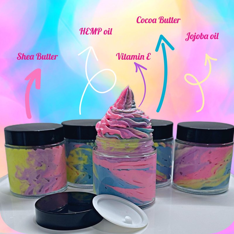 ByRawand Handmade Emulsified Whipped Body butter with Shea & Cocoa butter based with natural oils - non greasy, moisturizing (Blend of colors (Candy))