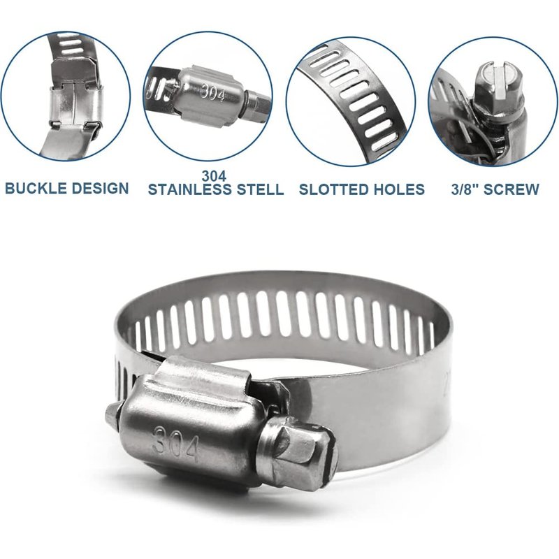 - ✅EASY TO INSTALL AND REUSABLE – The clamps is designed with a worm gear mechanism to adjust the clamp’s diameter to precisely apply sealing pressure. It attaches hoses for fitting hoses in confined spaces to prevent flow leakage. These clamps also can be recycled and reused due to the 304 stainless steel material which makes them work last long