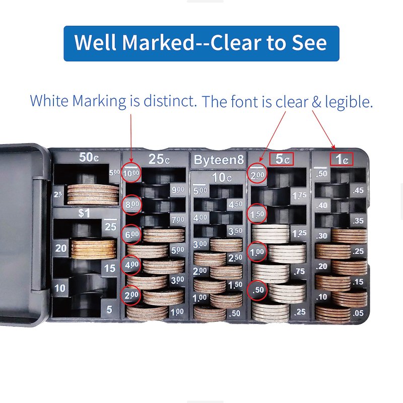 - Exactly Full One Design: Byteen8 Coin Sorter Tray is Exactly Full Roll Designed. One Roll One Group. No one more & No one less! Super Easy to Count and Wrap. Great Money Teaching & Learning Tool for Kids as a Gift. Perfect loose change tray to use with coin wrappers