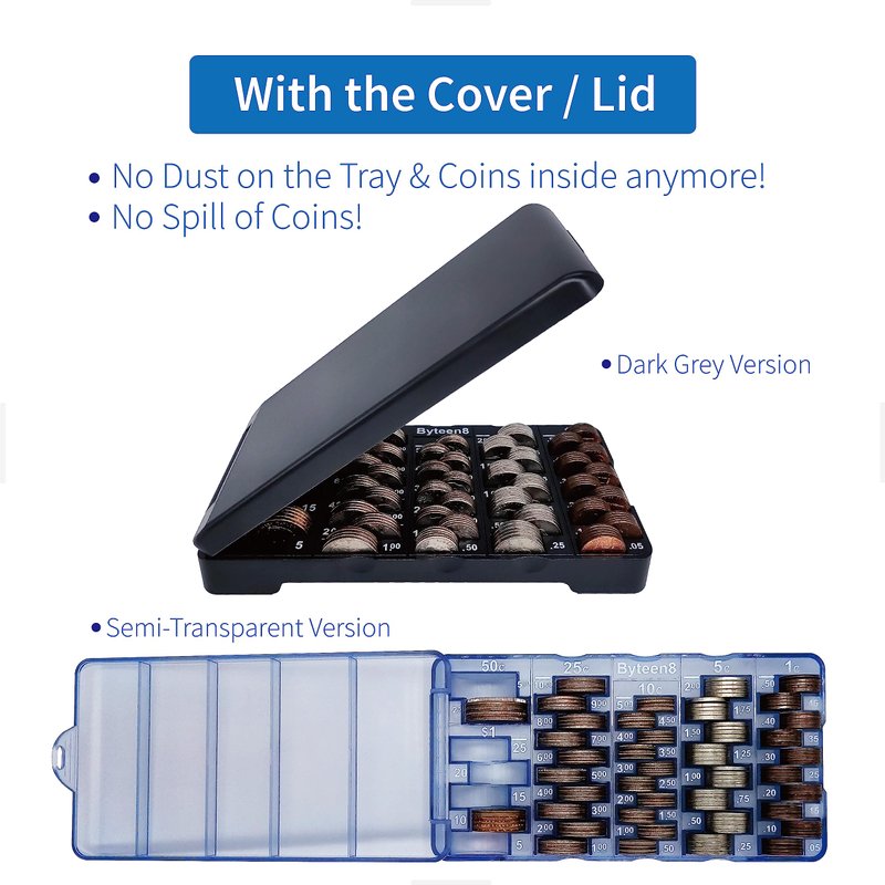 - With Cover Lid: Good protection when you move this Change Sorter. With time the dust will be left on the tray and coins inside if there is no cover. Good way to keep your Coin Bank Safe & Clean