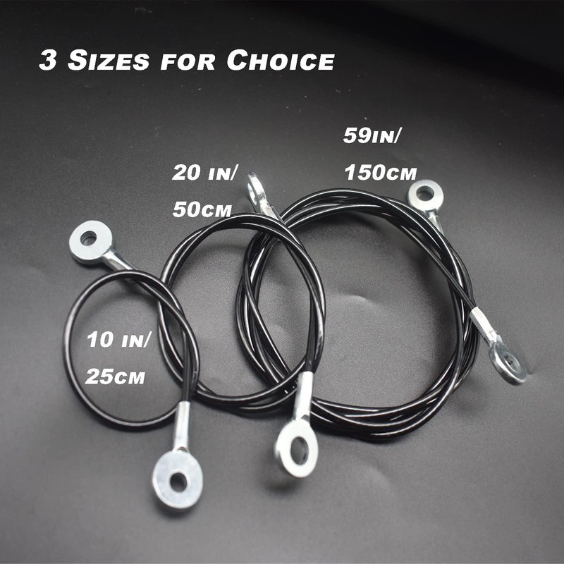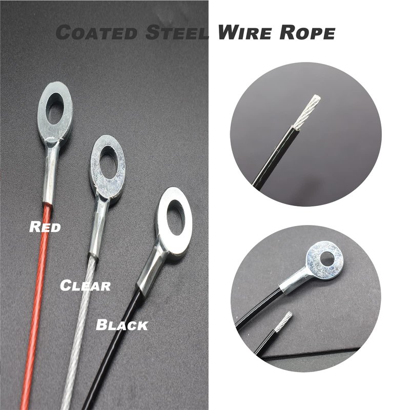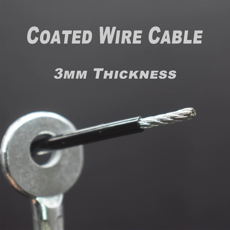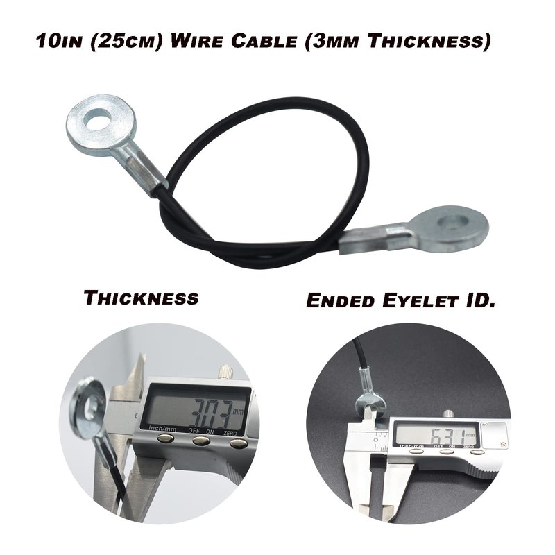 - Coating steel cable with eyelets, Total Length 10"(25cm)(Hole centre to centre). . 3mm in diamerer (included coating). Braided steel construction provides strength and flexibility along with strong cut resistance. 10 pcs include in package