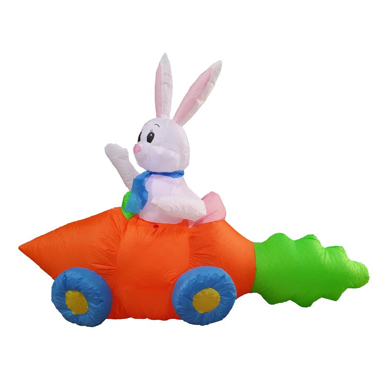 BZB Goods 5 Foot Long Easter Inflatable Bunny in Carrot Car Lighted LED Lights Outdoor Indoor Holiday Party Decorations Blow up Yard Lawn Inflatables Home Family Outside Decor