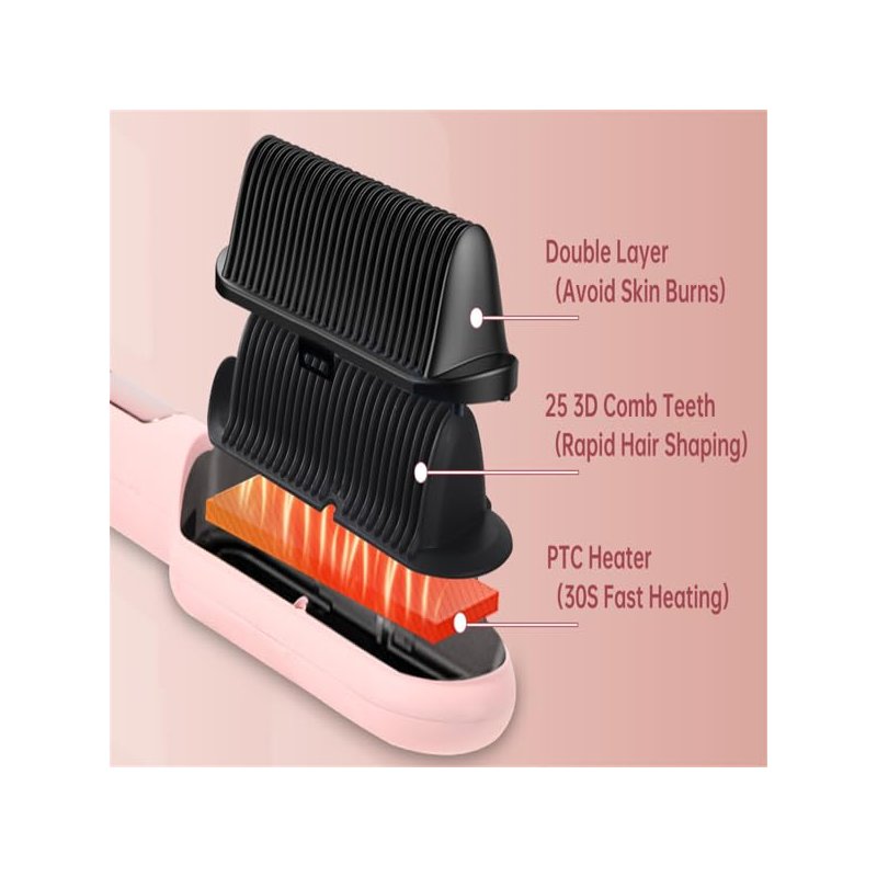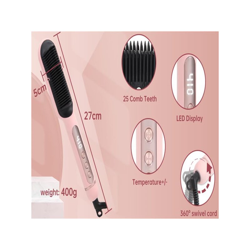 c, 30s Fast Heating, Hair Straightening Comb with LED Display, Anti-Scald & Auto-Shut Off Hair Straightening Iron (Pink)