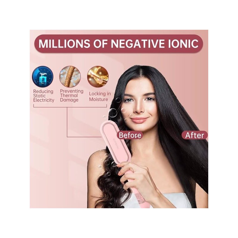 - Negative Ionic Effect: Millions of negative Ionic built in hair straightener brush, when you brush your hair, it can help the hair lock in moisture and provide a protective film, effectively preventing thermal damage, reducing static electricity and smoothing restlessness.