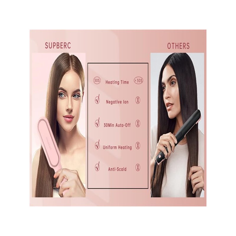 Without having to go to a hair salon, you can easily get a straight hair style at home by using our straightener comb. Millions of negative Ionic built in hair straightener brush, can help the hair lock in moisture and provide a protective film, effectively preventing thermal damage, reducing static electricity and smoothing restlessness.