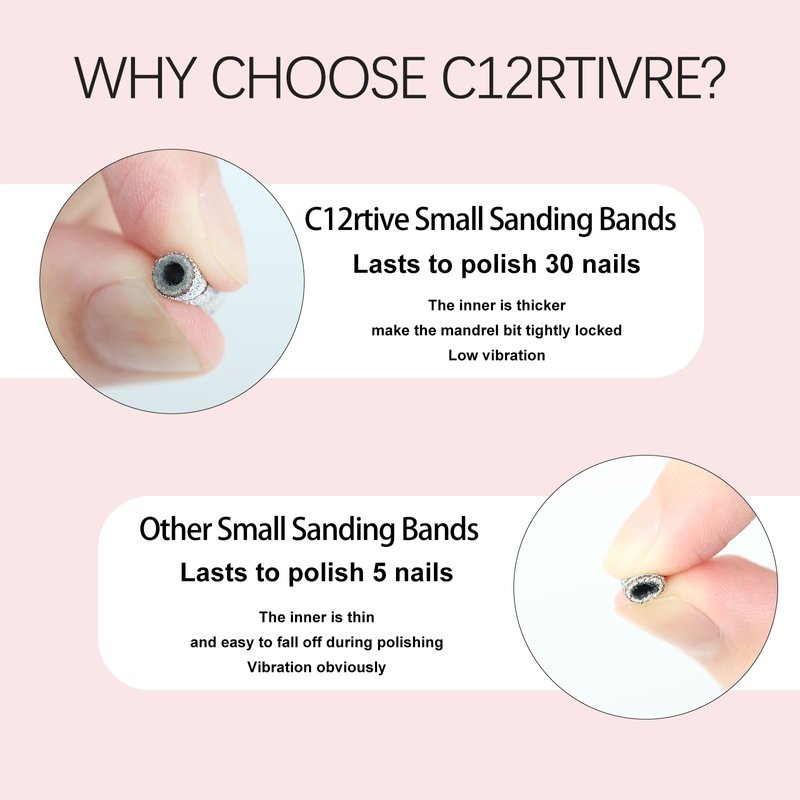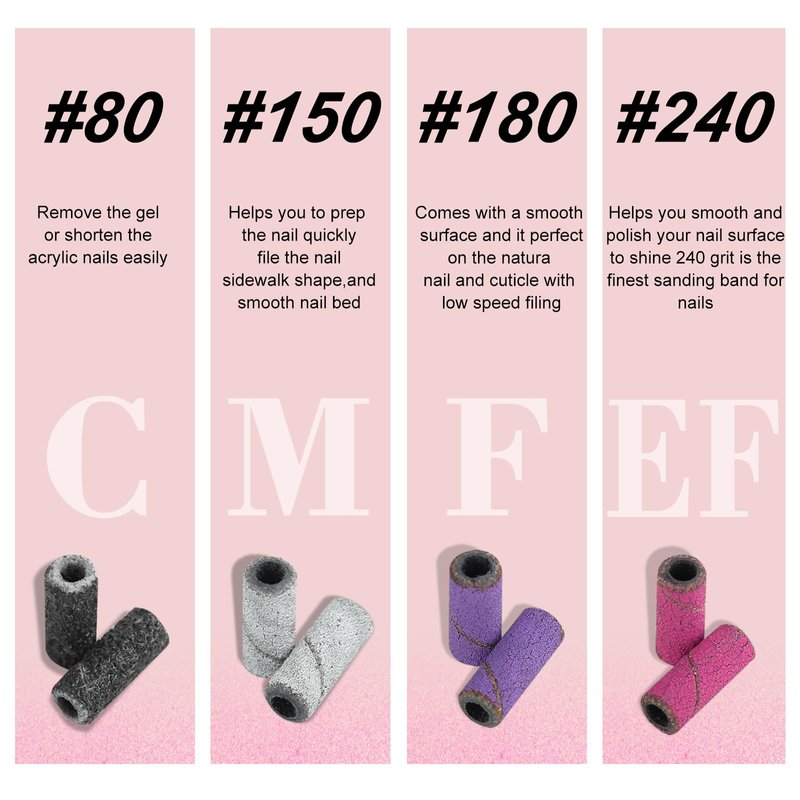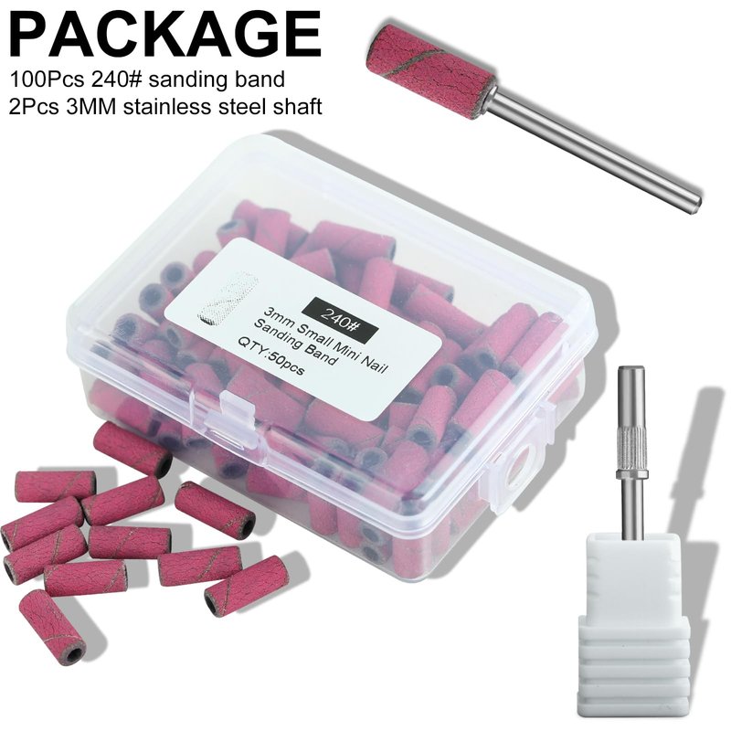 - UPGRADED 3MM SANDING BANDS: Comes with 100Pcs of #240 grit small sanding bands & 2Pcs 3mm small mandrel bit. Create a comfortable manicure experience when removing gel nails, shaping acrylic nails, and blending smooth surfaces.
