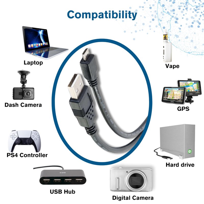 - USB A to B Cable - One (1) Black 3 Meter (9.84 Foot) Micro USB Cable USB Cord
