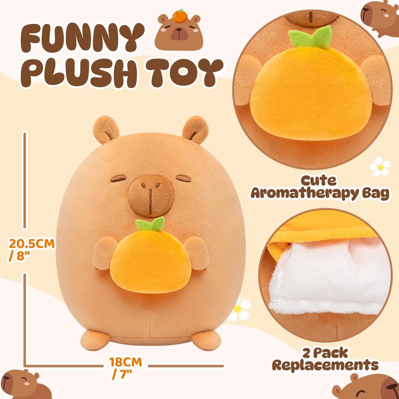 - Fresh Scented & Relaxing Plush: Our cute capybara plushie stuffed animal with soothing fresh orange scents, this plush toy is a great relief toy to relieve our fatigue and stress with a gentle hug & soft snuggles.
