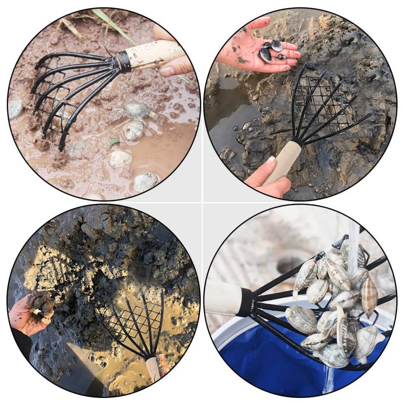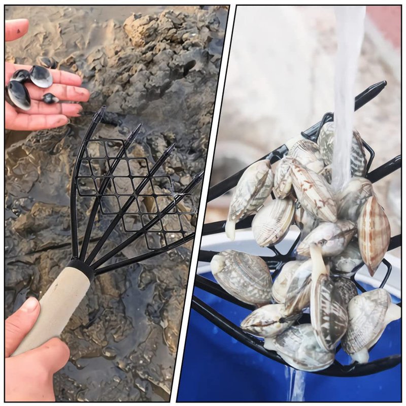 - This rake is specially designed for digging clams and other seafood.