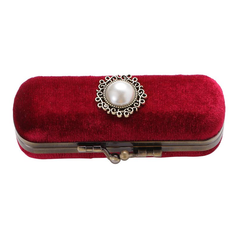 Cabilock Fashion Retro Velvet Lipstick Box Lip Balm Organizer Bag Durable Soft Cosmetic Storage Case with Mirror (Red)