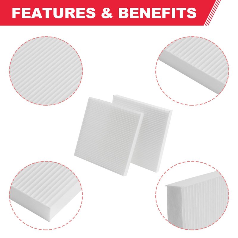 - 【Function】The Cabin Air Filter Effectively Filters Harmful Particles such as Dust,Wear Debris,Soot,and Dirt,and Provides Excellent Dust Prevention Capabilities,Making the Air Inside the Car Fresher. Air Filter Installation is Simple and Convenient,Directly Remove the Old Air Filter,Replace With A New One.