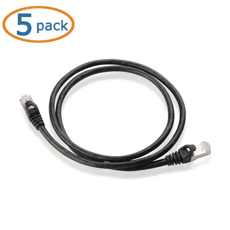 5 x SSTP Shielded Cat 6a Patch Cable in 3 Feet in Black
