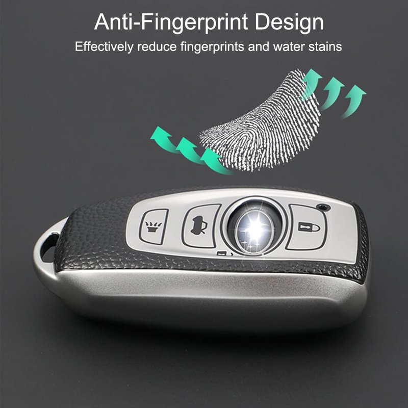 - [Material]: The key fob case is made with Premium Soft TPU and leather, skin-friendly touch, comfortable and soft, excellent touch feeling, looks good. Super thin, fits like a glove.Add anti-fingerprint coating to effectively reduce fingerprints.