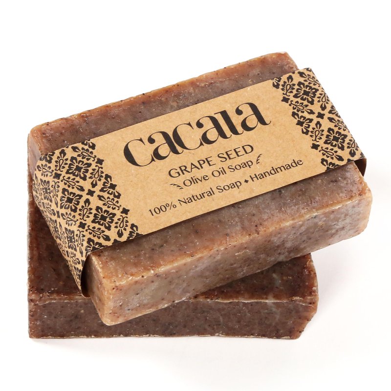 Cacala 100% Natural Organic Olive Oil Soap Unisex Soap Bar - Skin and Body Nourishing - Organic Gift Idea - Handmade in Turkey (Grapeseed, Pack of 2)