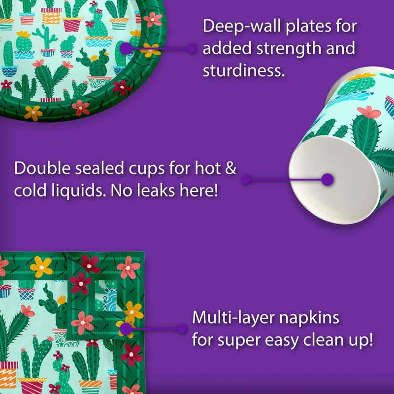 Cactus Birthday Party Supplies Set Plates Napkins Cups Tableware Kit for 16