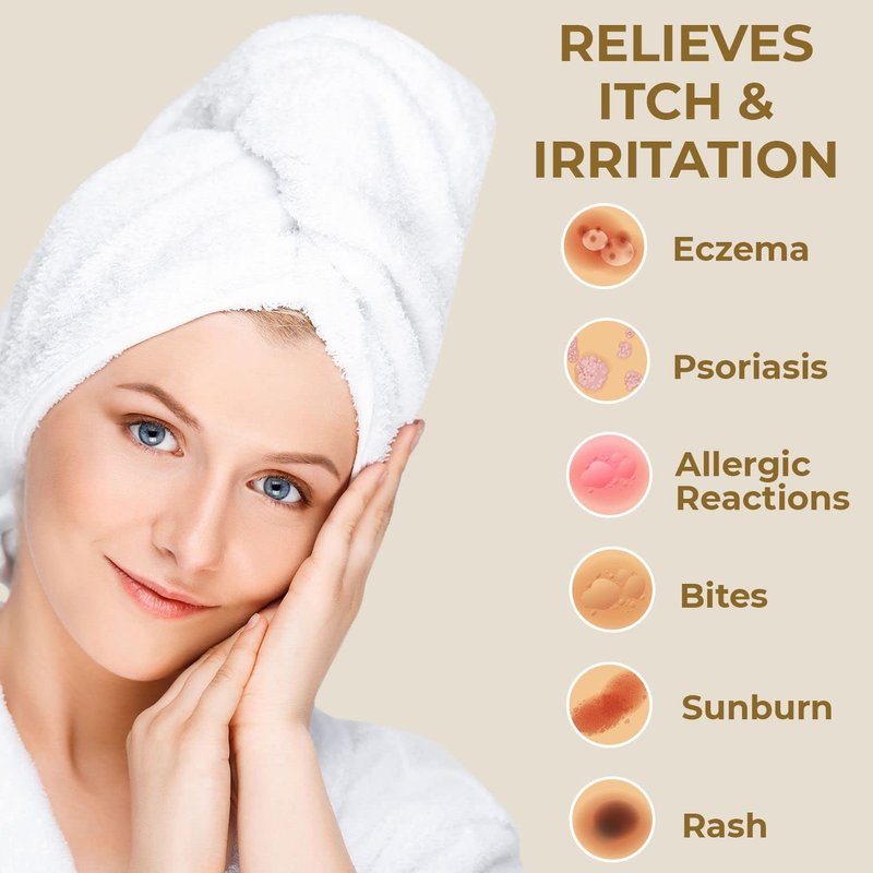 - RELIEVES ITCH & IRRITATION: Our all natural oatmeal honey goat milk soap provides soothing itch relief to calm & comfort inflamed skin affected by eczema, psoriasis, allergic reactions, bites, sunburn or rash.