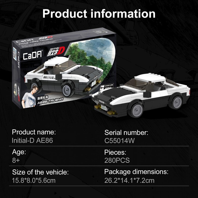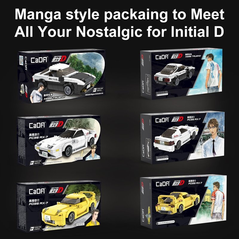- 【The Best Gift Idea】 Made of high-quality ABS plastic , this toy building set has passed toy certification in the US and Europe. CaDA Initial D series building toy sets all come in a beautifully designed manga-style package, making them the ideal gift for Initial D fans and birthdays, Christmas or any special occasion.