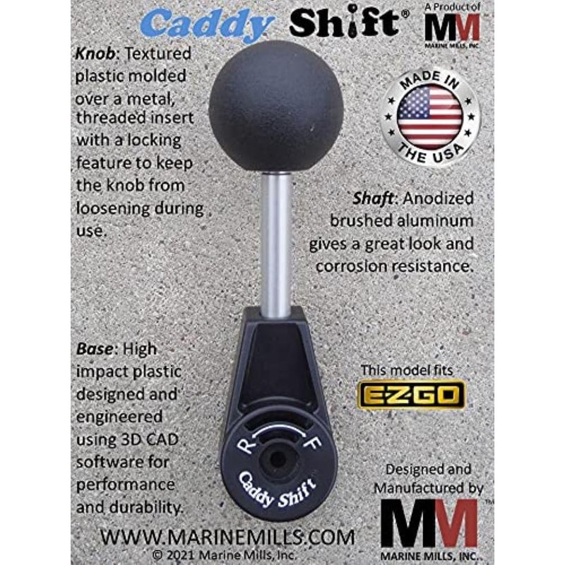 The Caddy Shift is a quality product manufactured in the USA designed specifically to replace your hard to shift E-Z-Go or Cushman factory shifter. The Caddy Shift makes shifting between forward and reverse easy. The stylish looks enhance the look of your golf cart as well. Easy to install with only a Phillips screwdriver. Please see listings for Club Car and Yamaha models on Amazon. NOTE: This product does work on any gas or electric cart, utility vehicle or personal transportation vehicle that uses the E-Z-Go or Cushman factory forward-reverse shift lever pictured in this listing. This product will NOT work on electric cart with rocker switch forward-reverse shifting. This product is manufactured in the USA. Customer service for this product is located in the USA.