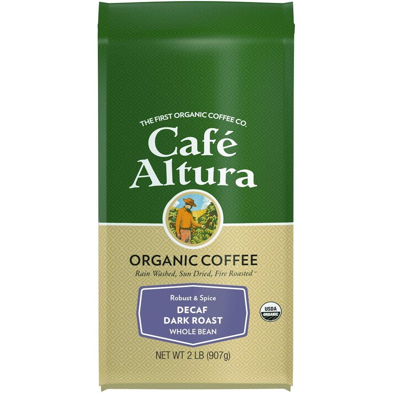 Cafe Altura Whole Bean Organic Coffee, Dark Decaf Roast, 2 Pound