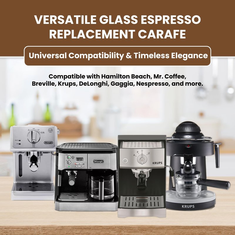 - ☕️ Our Universal Glass Espresso Carafe Replacement offers timeless elegance, functionality, and fits with all espresso machines.