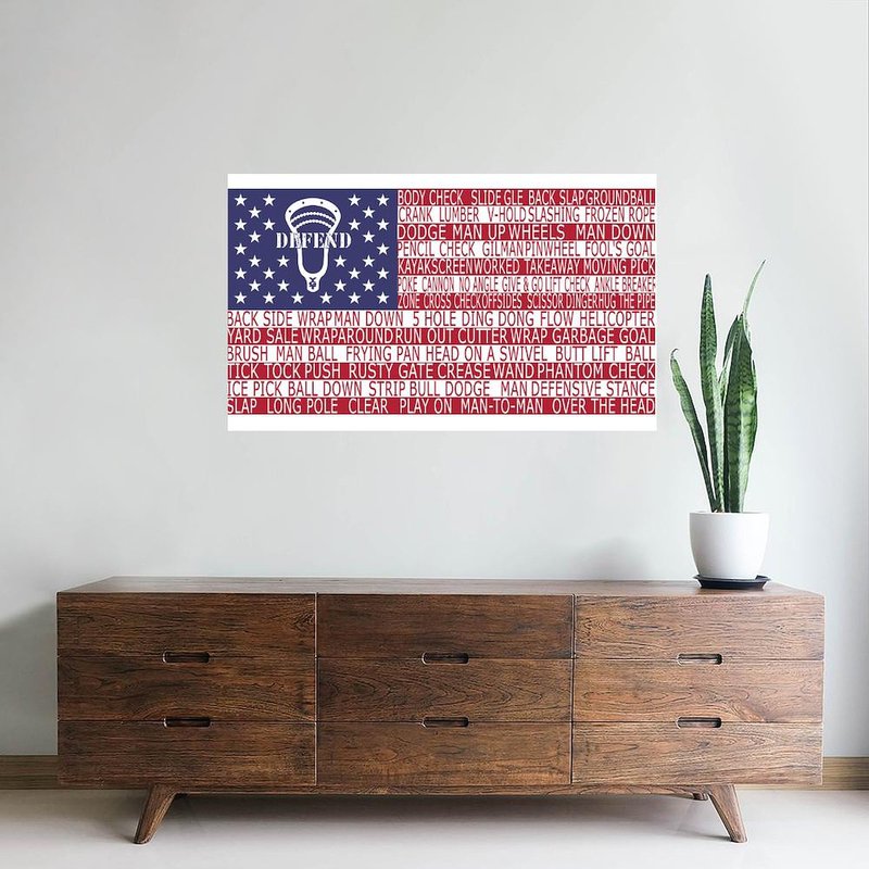 CafePress Lacrosse Defense Flag Wall Decal 35x21 Wall Decal, Vinyl Wall Peel, Reusable Wall Cling