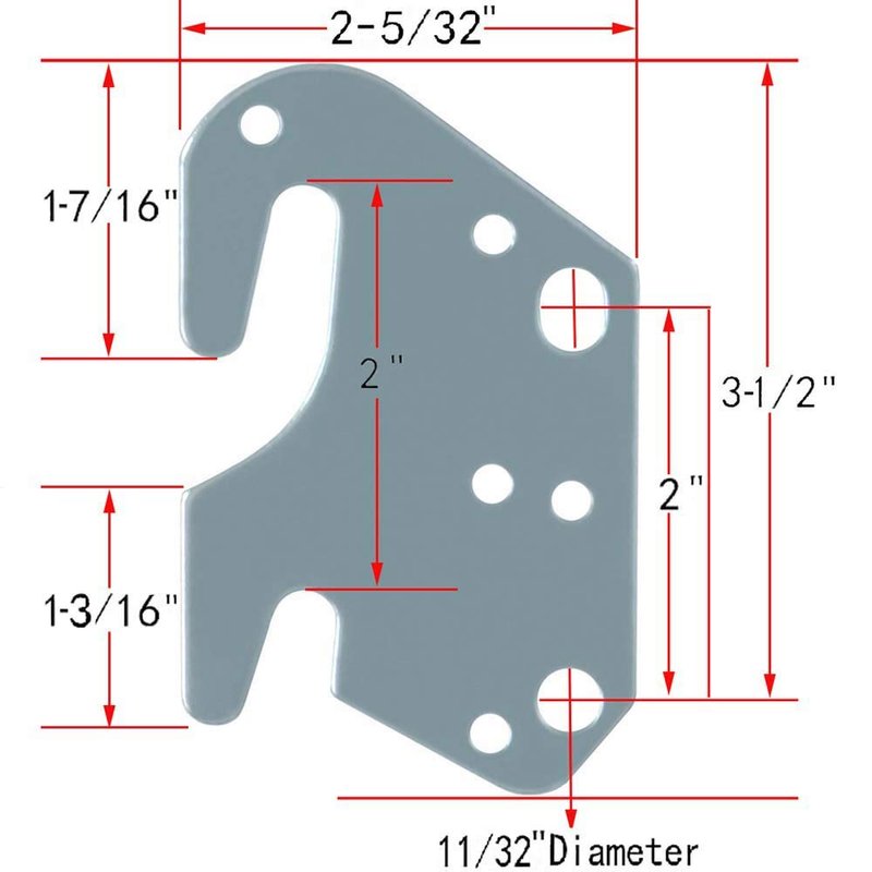 - 7 hole design to fit for most wooden beds, 2" hook separation. The bed hook plate claws are made with 13 Gauge steel and hook plates are zinc plated to resist rust and corrosion over time.