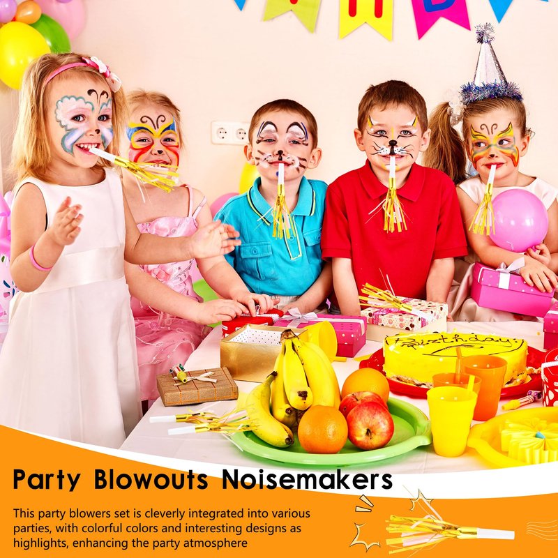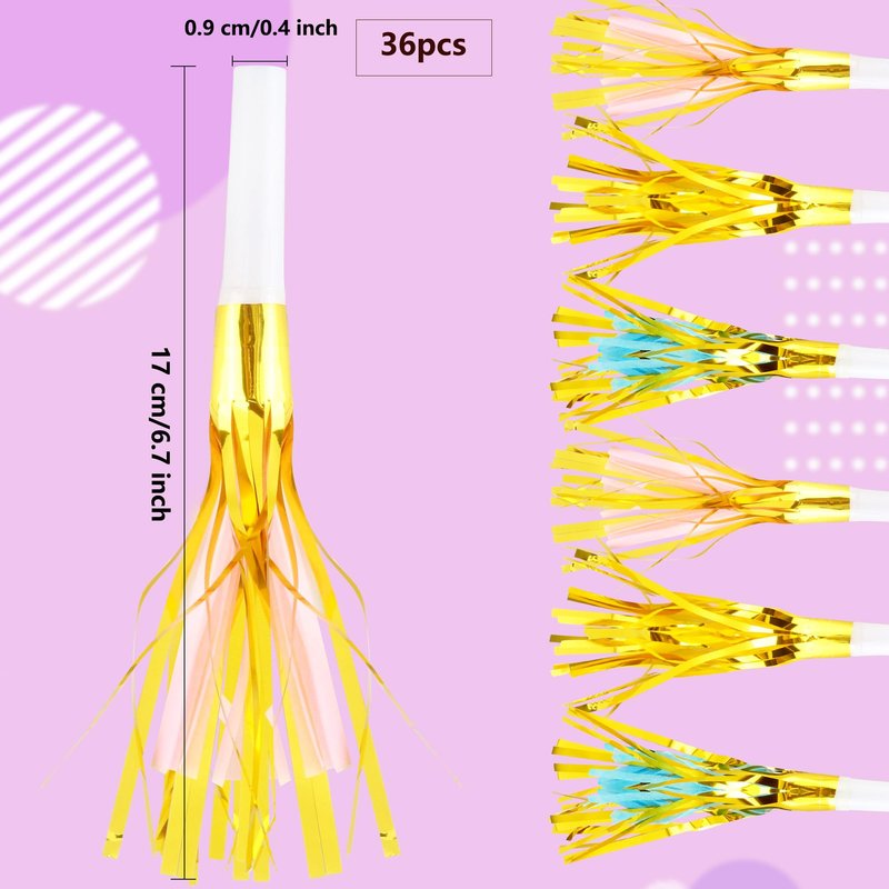 - Package includes: you will get 36 pieces of glittering metallic fringed noisemakers, sufficient quantity to ensure that your party needs are fully met. You can share happy moments with your friends, immerse in laughter together, and create beautiful and unforgettable memories
