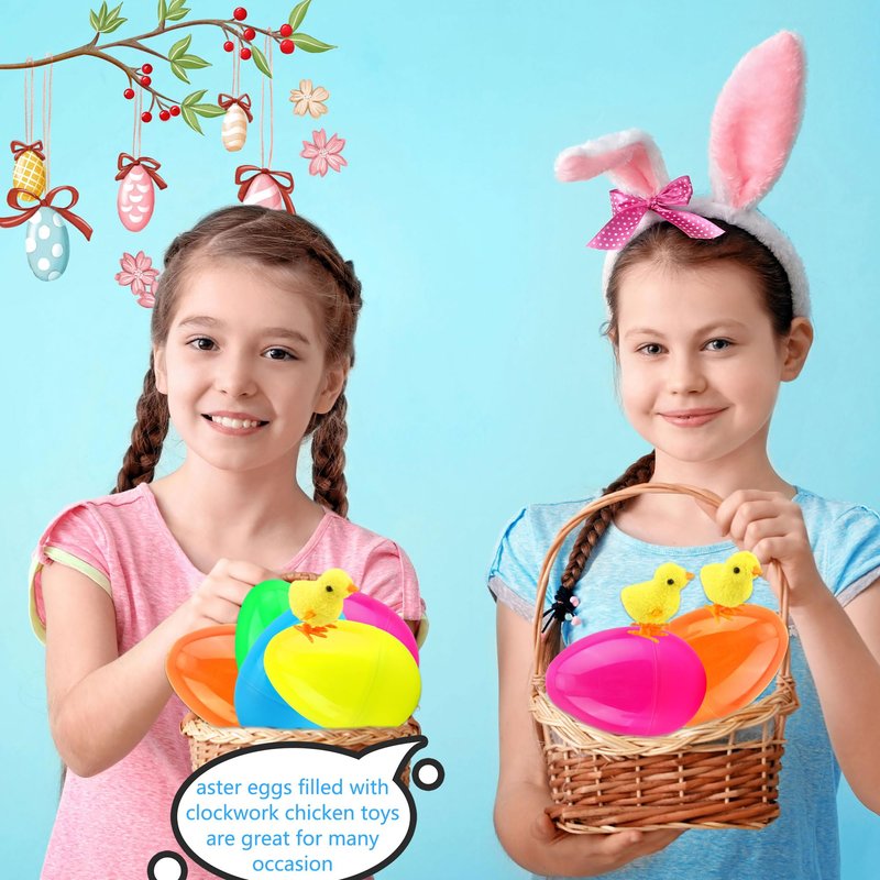 these Easter eggs filled with wind-up chicken toys are perfect for a variety of occasions, including Easter egg hunt games, Easter basket fillers, party favors, classroom prizes, school rewards, holiday gifts and all other occasions. And your kids will love watching these adorable wind-up chicks jump around, bringing joy and laughter to your various Easter celebrations