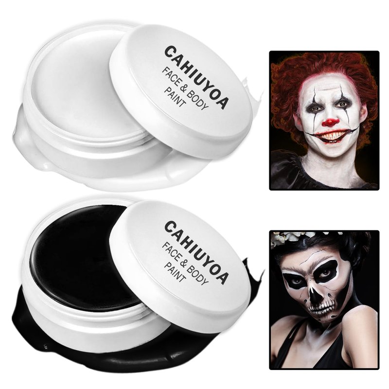 CAHIUYOA 2PCS Black White Face Body Paint Clown Makeup Kit,Halloween White Face Paint SFX Makeup Kit,Professional Face Painting Kit for Adults and Kids